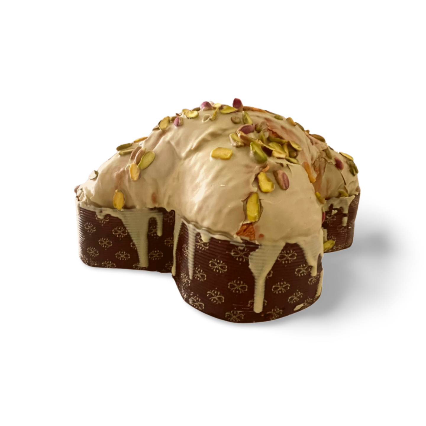 Colomba artigianale senza canditi con crema di pistacchio da spalmare ricoperto con glassa e pistacchi verdi di Bronte DOP rigorosamente interi. La nostra crema spalmabile al pistacchio è inclusa nella confezione. Base: Farina di frumento, burro di latteria, zucchero, tuorli di uova pastorizzate di galline allevate a terra, lievito madre, emulsionante: E-471 di origine vegetale, sale, latte scremato in polvere, maltodestrine, proteine del latte, lievito naturale, buccia di agrumi siciliani, aromi. Copertura: zucchero, grassi vegetali totalmente idrogenati (palmisti), pistacchi (6 %), latte scremato in polvere (8%), lattosio, emulsionante: E322 (lecitina di girasole), aroma (vanillina). Prodotto in uno stabilimento in cui si utilizza frutta a guscio, pesce, sedano, soia, formaggio, uova, farina, latte. Peso: 1Kg Confezionato a mano.